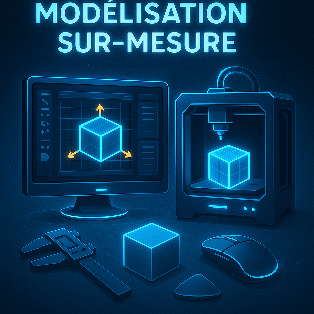 Création de pièces sur mesure pour particuliers, remplacements et demandes spécifiques en impression 3D.